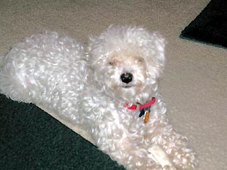 Meet Charlie Brown, the newest member of the family. He is a male Bichon Frise.