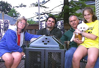 Here's the gang cuddled around the Coleman Portable Campfire Paul sent me for Father's Day.