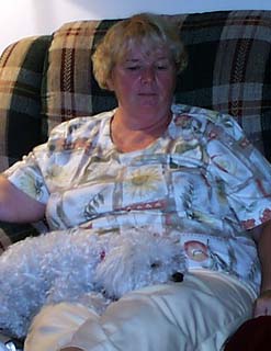 Relaxing with Charlie Brown on her lap...